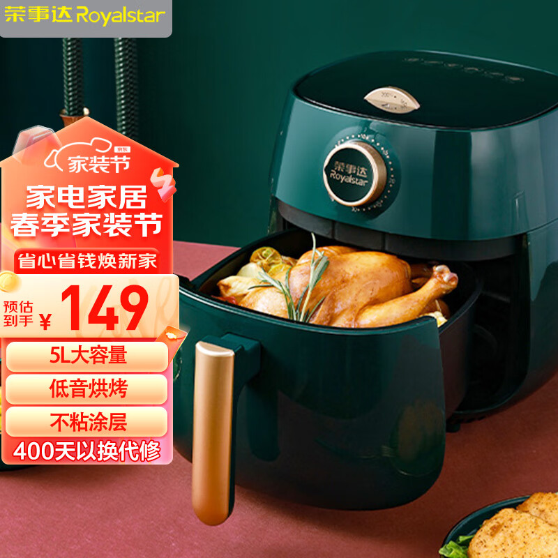 荣事达(Royalstar)空气炸锅家用大容量5L多功能无油烟旋钮定时温电炸锅大功率不沾低脂煎炸锅薯条机 RS-AF1510价格:149.00元!