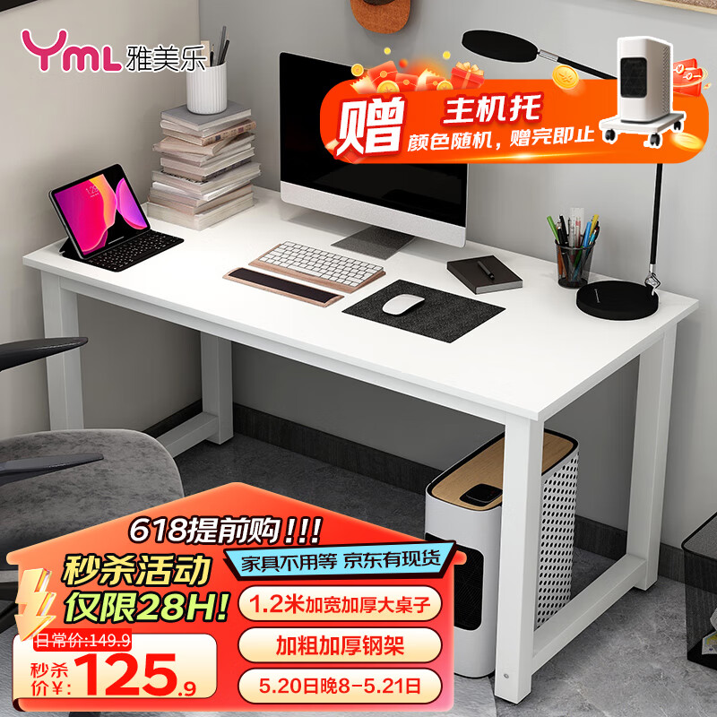 雅美乐电脑桌台式家用办公书桌学习桌中学生简易桌子 白色120*60价格:125.90元!