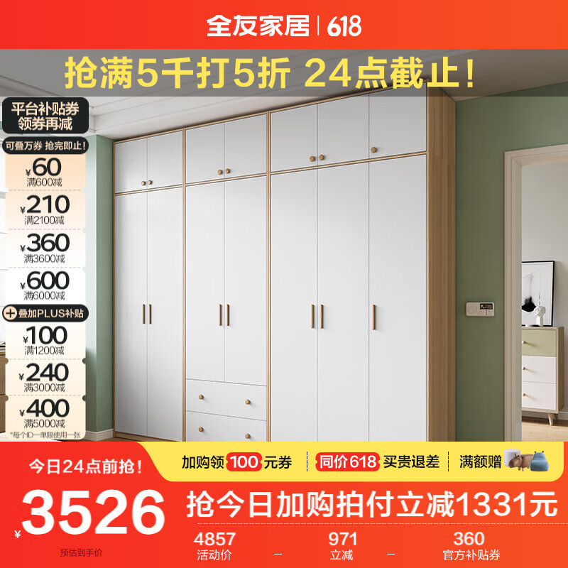 全友全友家居 衣柜现代北欧平开门衣柜组合126331价格:4857.50元!