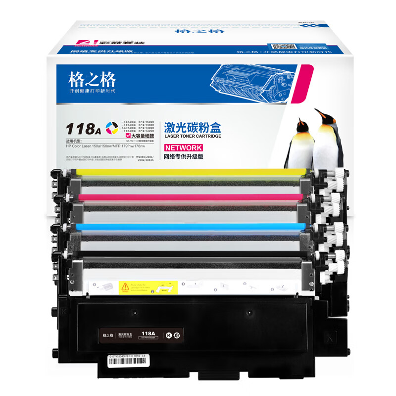 格之格178nw硒鼓 适用惠普118a硒鼓 hp179fnw墨盒 178nw粉盒 150a 150nw w2080a硒鼓四色套装带芯片大容量价格:399.00元!