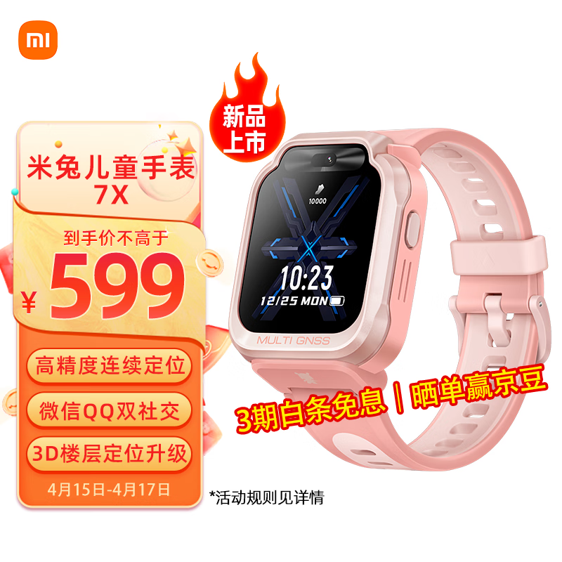 小米(MI)儿童电话手表7X 米兔学习手表 3D楼层定位2.0 高清双摄 支持儿童微信 小爱同学【6X升级款】粉色价格:599.00元!