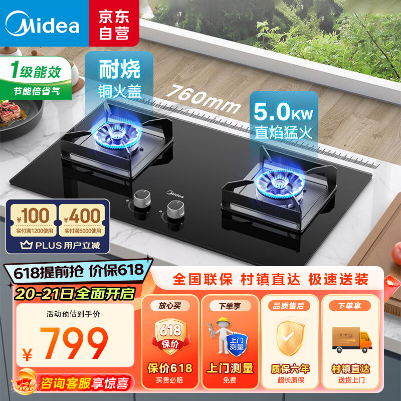 美的(Midea)燃气灶液化气 双眼灶 铜火盖 5.0kW大火力灶具 家用台嵌两用灶具 Q230A-M 液化气价格:799.00元!