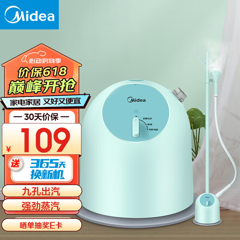 美的(Midea)【九孔强劲蒸汽】 挂烫机家用 手持蒸汽挂烫机立式挂烫智能烫衣服电熨斗熨烫机 【绿色不带板】YGJ15Q1价格:199.00元!