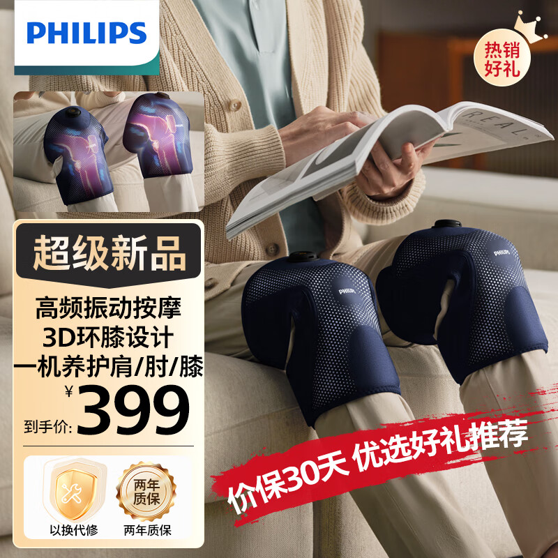 飞利浦(PHILIPS)膝盖按摩仪器膝部按摩器 膝关节腿部保暖护膝热敷老寒腿送长辈爸妈男女生礼物礼品3108L 蓝 L码价格:439.00元!
