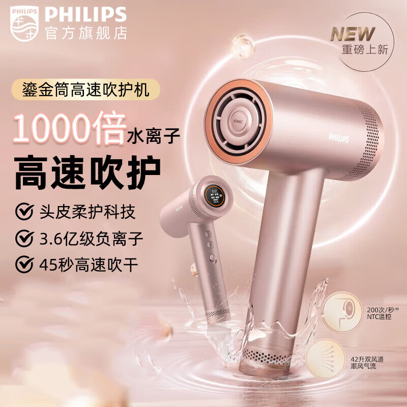 飞利浦(PHILIPS)家用电吹风高速吹风机负离子大风力速干低噪音便携 BHD737/05价格:949.00元!