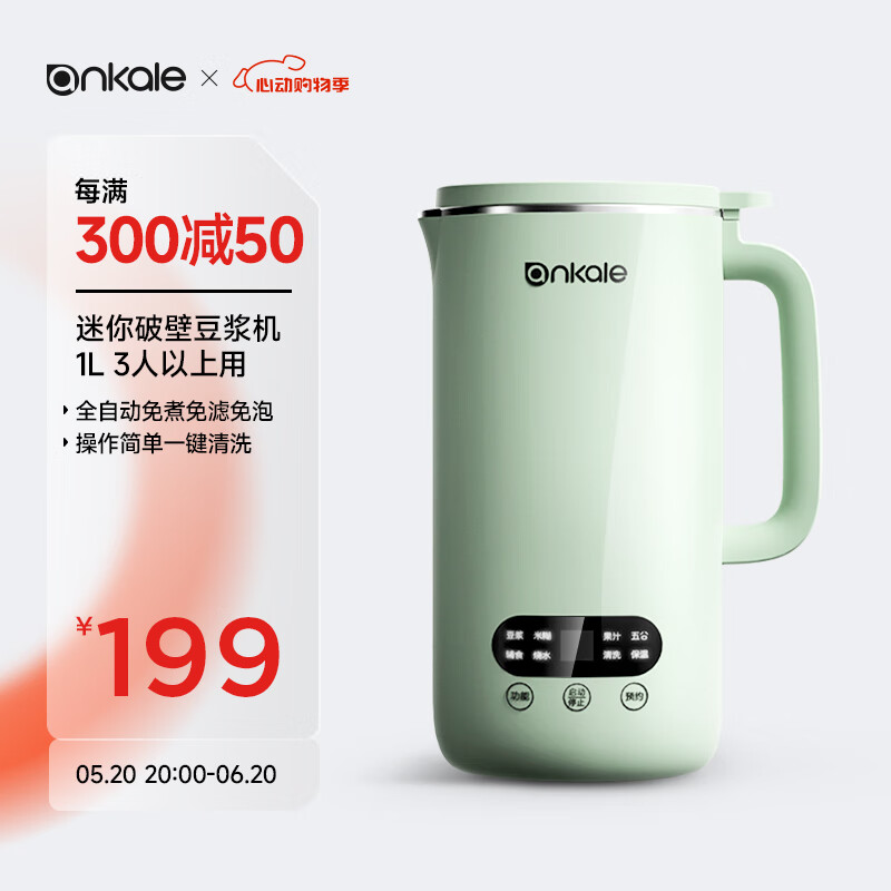 ankale破壁机 豆浆机 全自动免煮五谷杂粮 家用免洗小型1-2人破壁豆浆机 「清新绿」1000mL价格:199.00元!