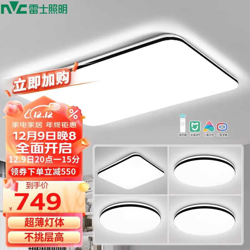 雷士照明(NVC)LED吸顶灯简约客厅大灯卧室餐厅灯具套餐 智能三室两厅客厅顶灯价格:1299.00元!