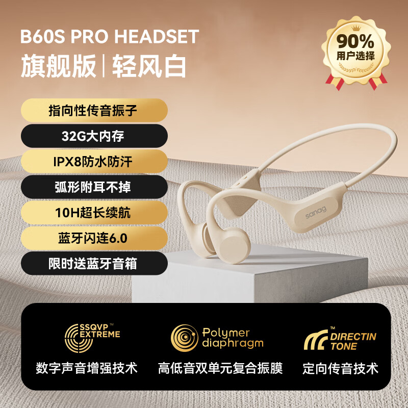 SANAG塞那【央视甄选|QQ音乐认证】B60骨传导蓝牙耳机 开放式运动耳机跑步骑行不入耳游泳耳机 高端礼物价格:439.00元!