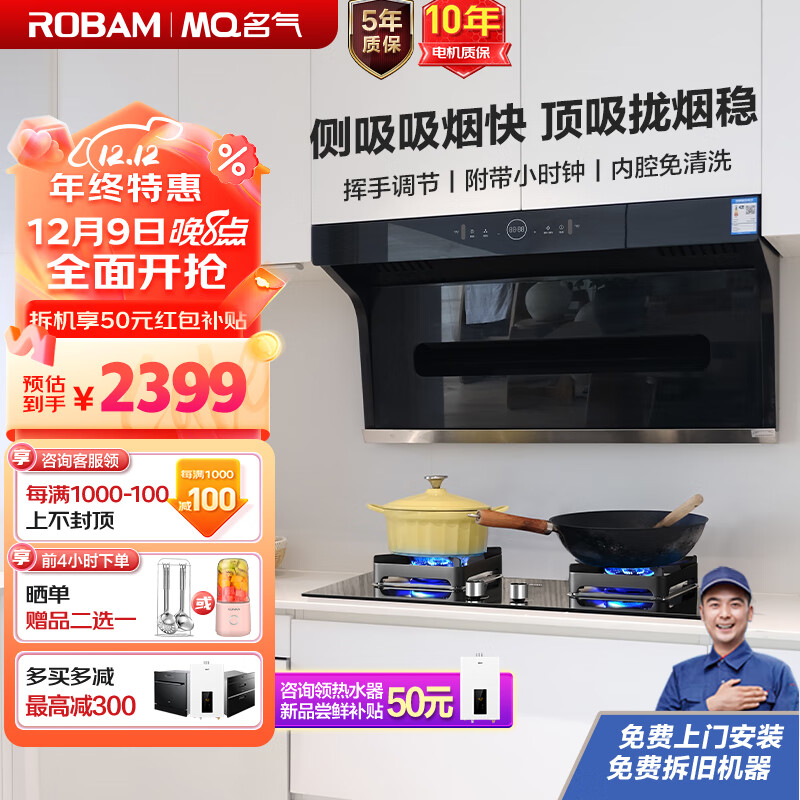 名气(MQ)老板抽油烟机灶具套装顶侧双吸油烟机大吸力23m3烟灶套装双灶液化气A5505+B510A免费安装价格:2399.00元!