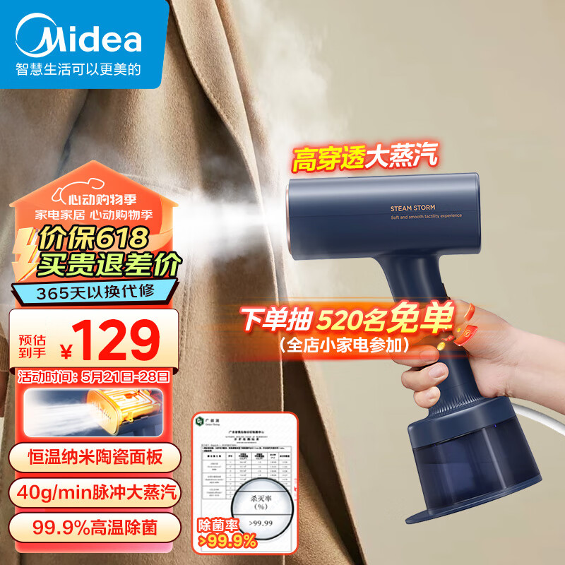 美的(Midea)【暴风蒸汽】手持挂烫机家用电熨斗熨烫机大蒸汽电熨斗旅行出差便携式小型熨烫机团购礼品YBJ21T1价格:129.00元!