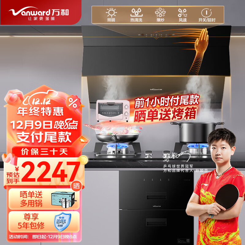 万和(Vanward)烟灶消三件套 侧吸式 油烟机燃气灶具消毒柜厨房多件套装 DJ738+B7L51+ZTD100Q-D5(液化气)价格:2297.00元!