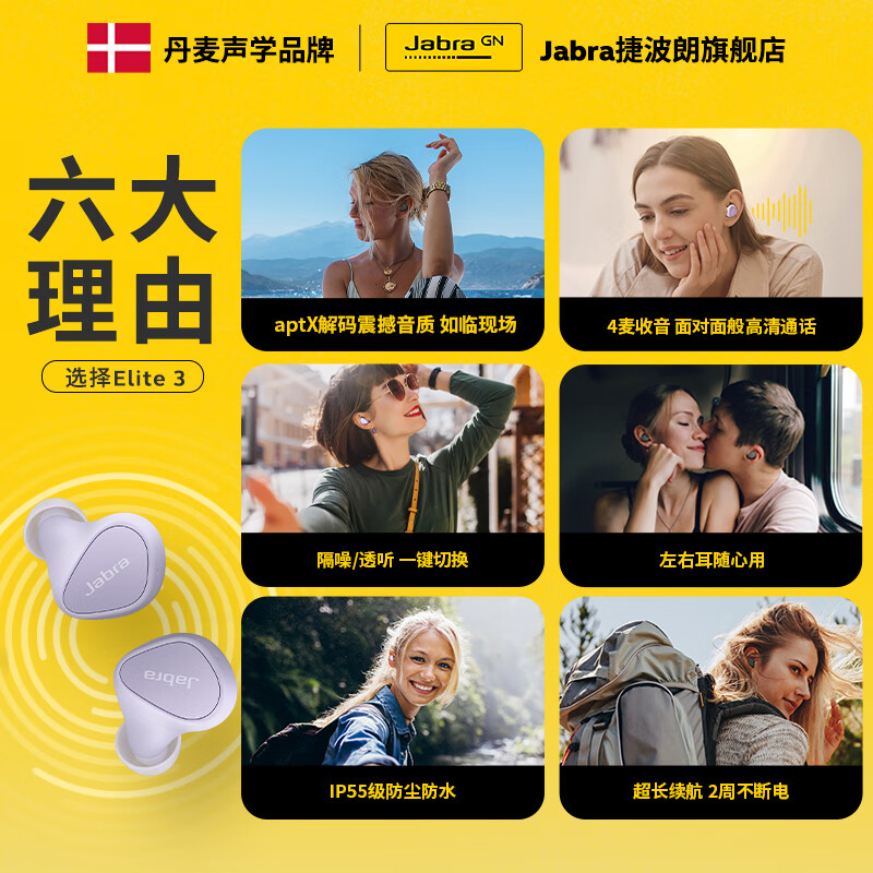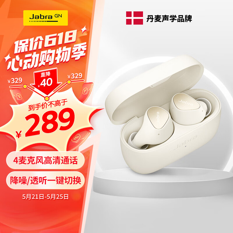 捷波朗(Jabra)Elite3 真无线蓝牙降噪耳机 蓝牙5.2 强劲续航(65t升级版E3) 安卓苹果音乐耳机 月牙白色价格:289.00元!