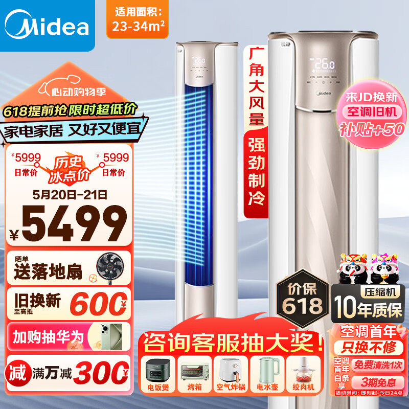 美的(Midea)锐静一级2匹空调变频柜机立式客厅冷暖两用制冷制热大风口空调家电以旧换新51VHC1Ⅱ【锐云升级】价格:5499.00元!