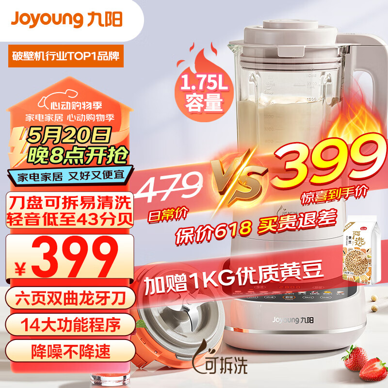 九阳轻音破壁机 可拆易清洗 家用榨汁机 豆浆机 多重降噪 高温清洗 热烘除菌 破壁机L18-P660价格:399.00元!