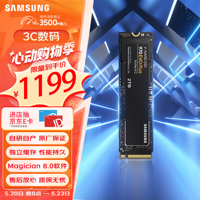 三星(SAMSUNG)2TB SSD固态硬盘 M.2接口(NVMe协议) 独立缓存 AI电脑配件 970 EVO Plus价格:1199.00元!