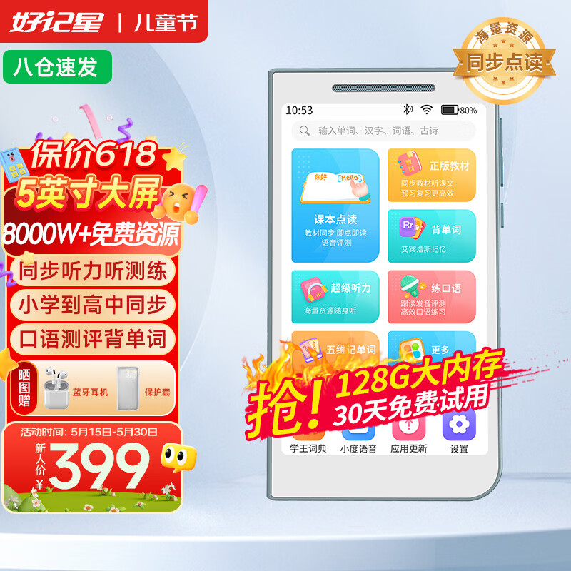 好记星【八仓速发】口袋学习机听力宝儿童小学初中高中课程同步英语学习机神器随身听节日礼物 尊享版【128G+同步点读+口语测评+名师课堂】价格:699.00元!