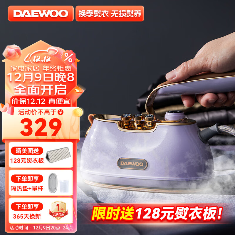 大宇(DAEWOO)挂烫机家用熨烫机电熨斗 手持挂烫机 增压蒸汽 旅游出差便携式小型自清洁除菌除螨HI-036星黛紫价格:479.00元!
