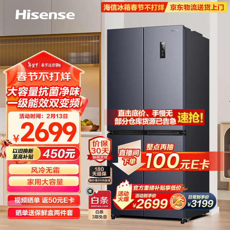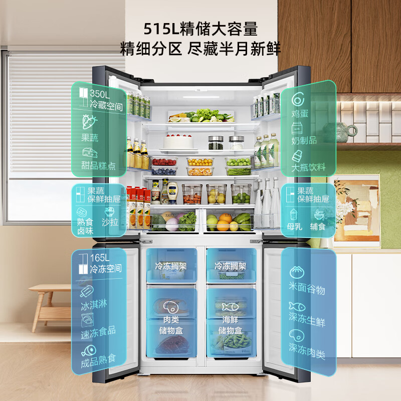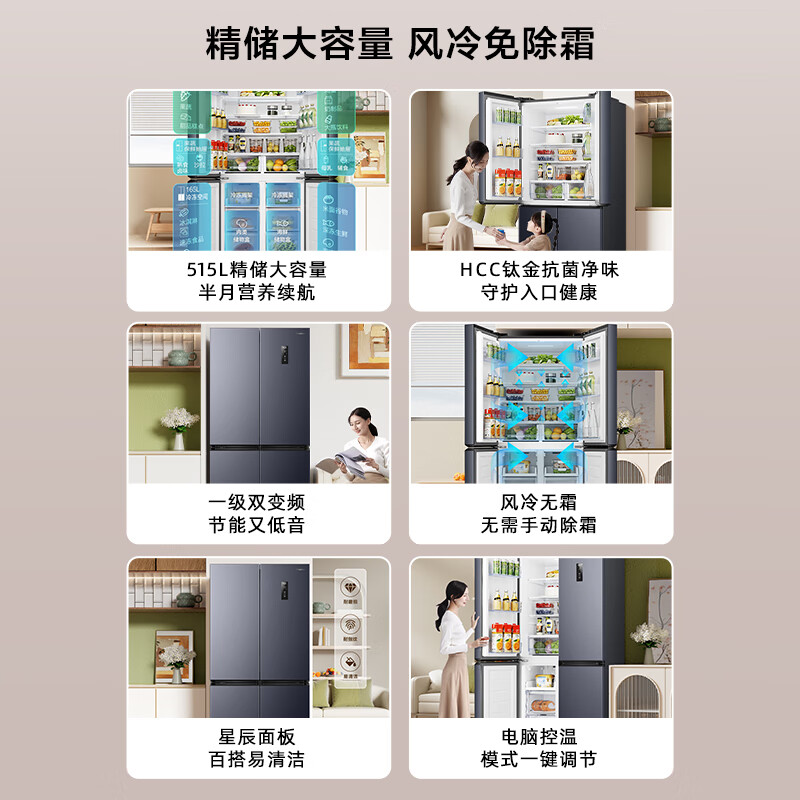 海信(Hisense)515升十字门冰箱家用大容量变频一级能效 风冷无霜大冷冻空间电冰箱以旧换新 BCD-515WMK1DPQ价格:2699.00元!