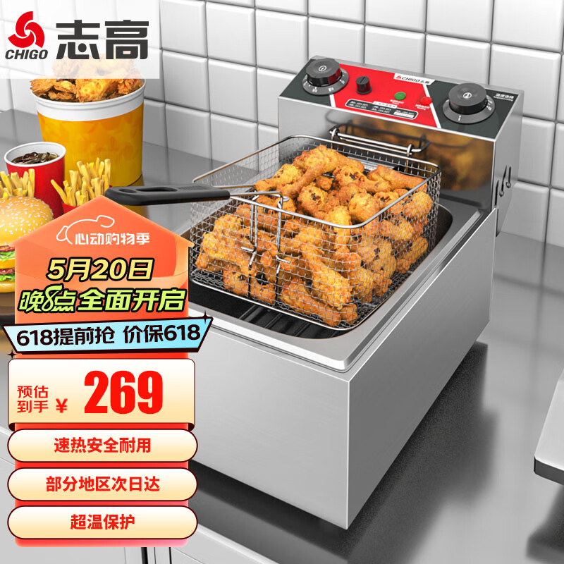 志高(CHIGO)电炸炉商用定时小吃油炸锅油炸机油条机薯条机家用电炸锅油炸炉炸串机企业采购 ZG-ASQ-81A单缸价格:269.00元!