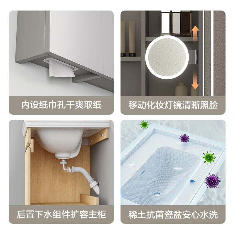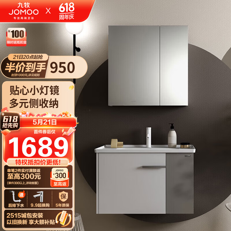 九牧(JOMOO)浴室柜陶瓷一体盆奶油风洗脸盆柜组合右侧收纳80cm A2716-147H-1价格:2249.00元!