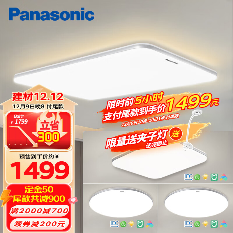 松下(Panasonic)客厅灯 LED吸顶灯米家智能控制灯具 三室一厅价格:2399.00元!