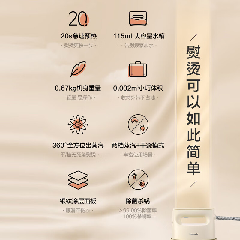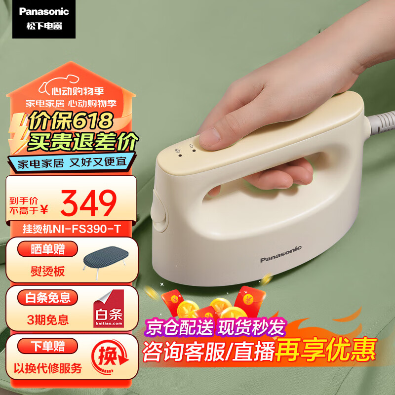 松下(Panasonic)手持挂烫机 电熨斗 家用小巧便捷 高温蒸汽除菌杀螨 四合一熨烫电熨斗 NI-FS390 (摩卡棕)价格:349.00元!