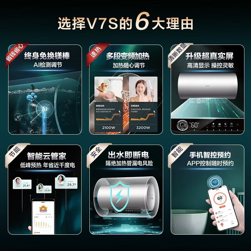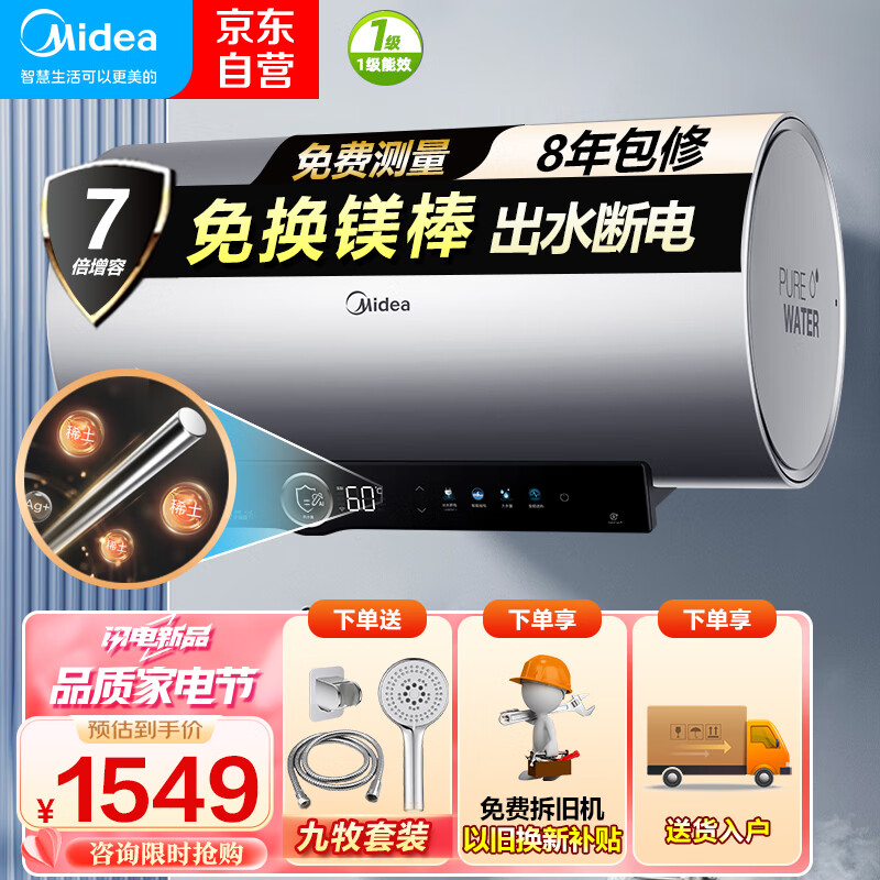 美的(Midea)80升储水式电热水器家用智能变频速热 出水断电终身免换镁棒一级能效 F8032-V7S(HE)价格:1549.00元!
