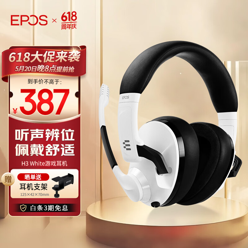 音珀EPOS H3 White 游戏耳机头戴式 PS5 Xbox电脑耳机有线 降噪 CSGO 吃鸡电竞耳机耳麦 搭声卡7.1音效价格:387.00元!