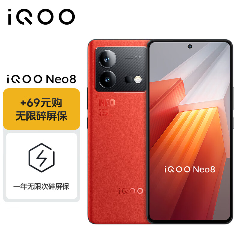 vivo【iQOO安心保-钻石服务包套装】iQOO Neo8 12GB+512GB 赛点 代骁龙8+ 自研芯片V1+ 5G游戏电竞手机价格:2568.00元!