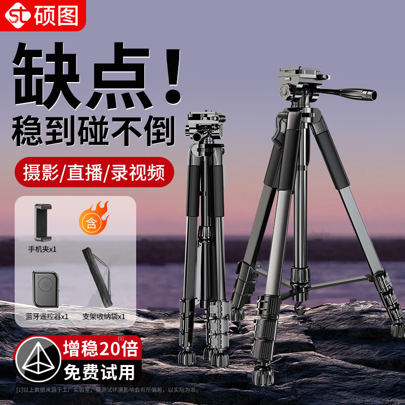硕图三脚架相机云台套装单反微单数码相机摄像机蓝牙遥控手机拍照摄影落地户外三角架1.9米价格:148.00元!