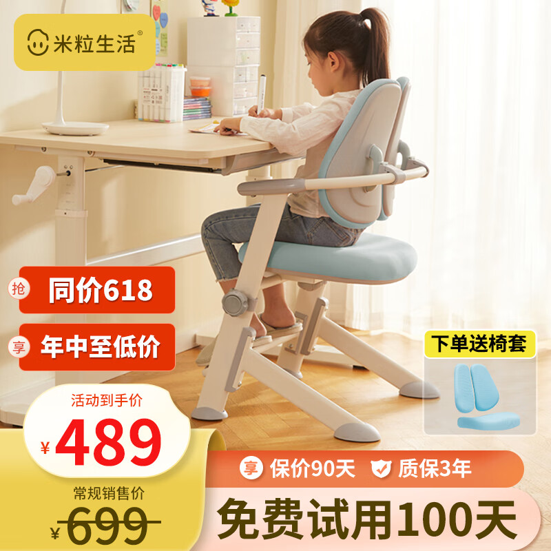米粒生活F1儿童学习椅子书房写字椅小学生家用可升降座椅凳追背椅130F蓝价格:699.00元!