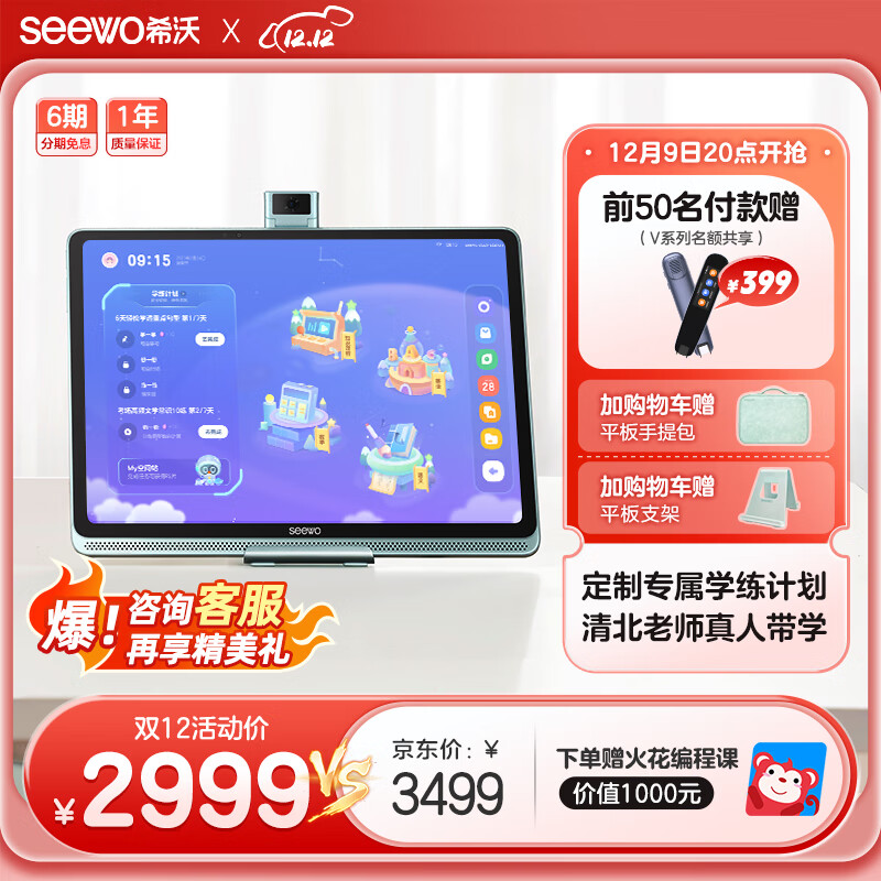 希沃护眼学习平板V1 Pro 类纸护眼学习机学练机家教机小学初中高中学生专用智能学习平板6G+256G价格:2999.00元!