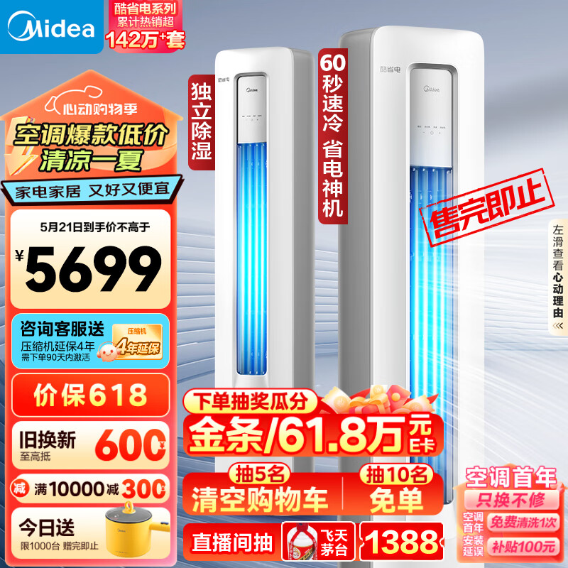 美的(Midea)空调 3匹 酷省电 新一级能效 变频冷暖 空调立式 客厅空调柜机 独立除湿 KFR-72LW/N8KS1-1价格:5799.00元!