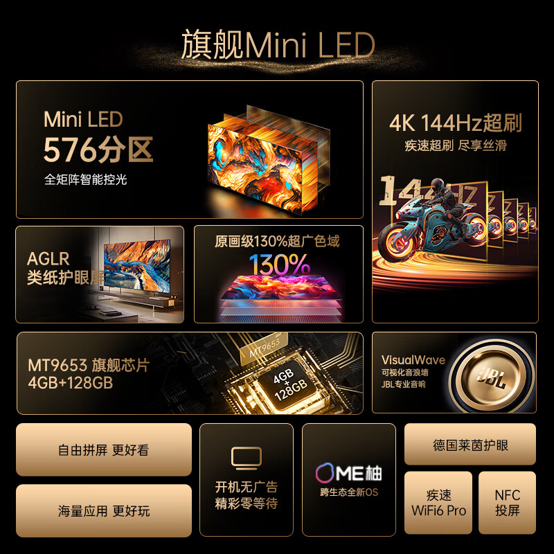 电视类型:智能电视,大屏4k超清,开机无广告电视,MiniLED,游戏电视
