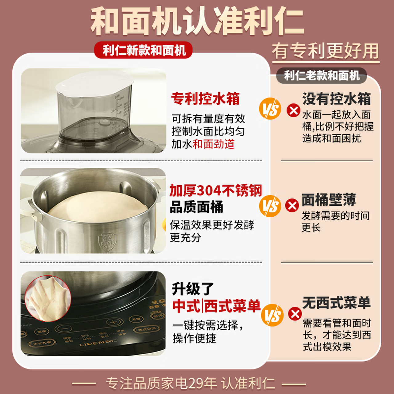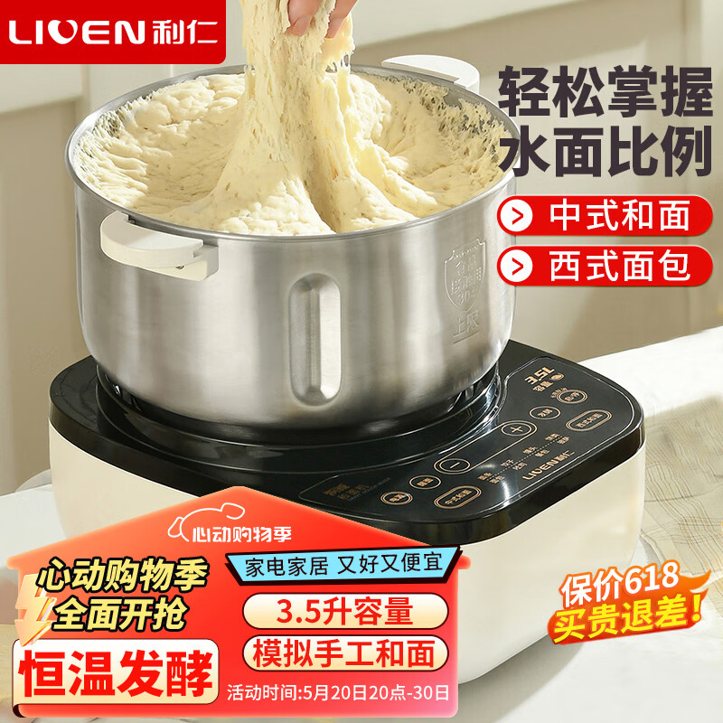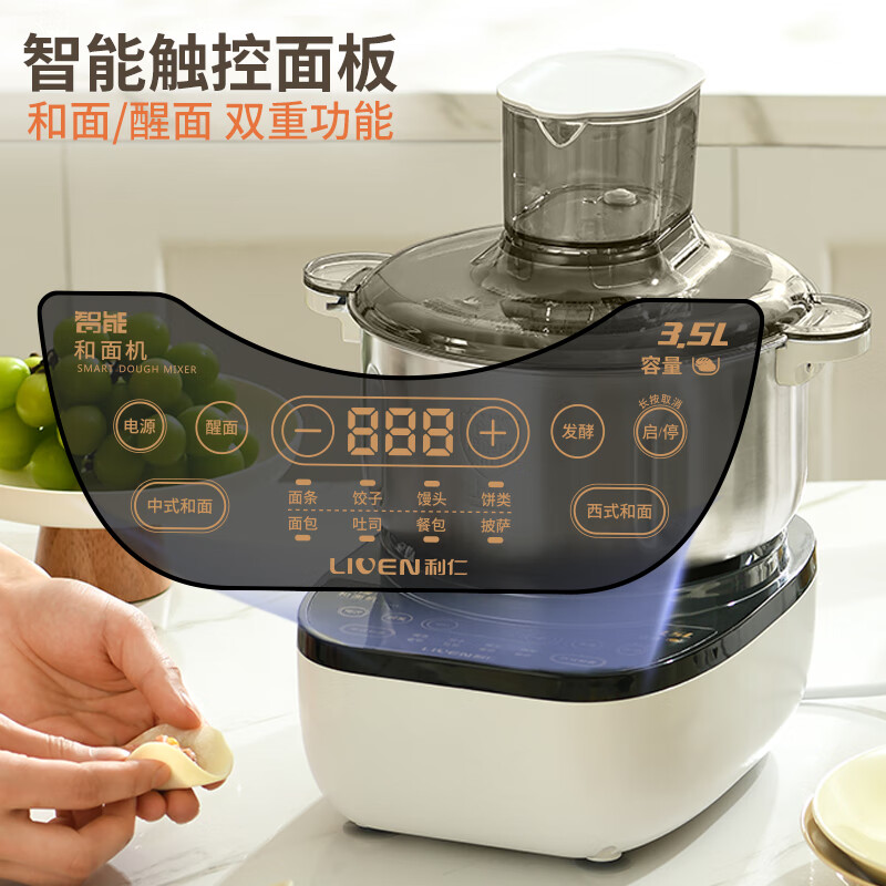 利仁(Liven)和面机家用揉面机厨师机全自动搅面机发面机醒面机多功能搅拌机家用料理机智能款3.5升 HMJ-D3526价格:299.00元!