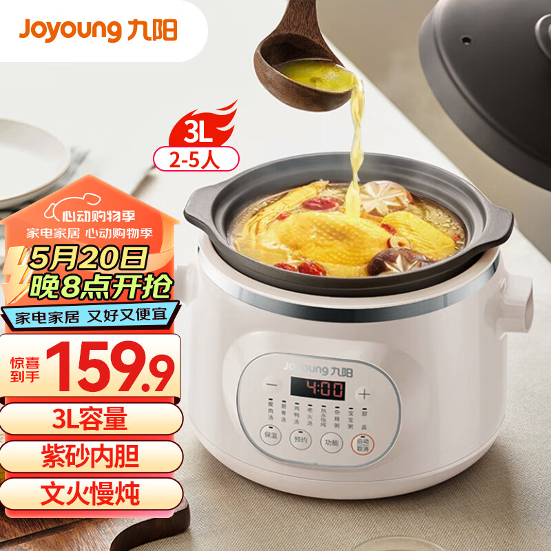九阳 (Joyoung)电炖锅电炖盅煲汤锅炖汤锅 煮粥锅 紫砂内胆 3升 GD517价格:159.90元!