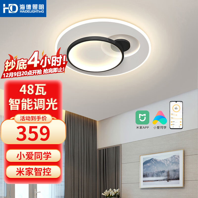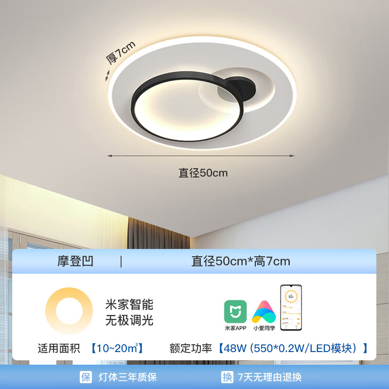 HD米家智能语音吸顶灯 led北欧卧室灯客厅灯饰餐厅书房现代简约灯具价格:469.00元!