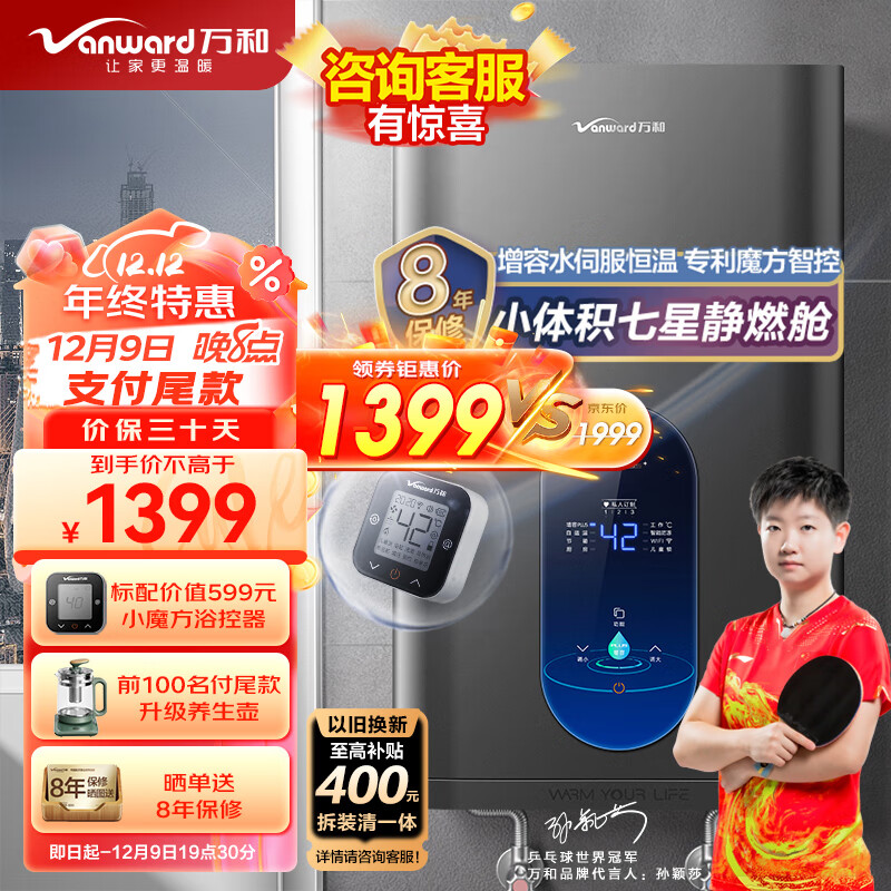 万和(Vanward)13升燃气热水器天然气小体积降噪小魔方智控直流变频水量伺服器恒温一键增容防冻JSQ25-ME5D13价格:1899.00元!