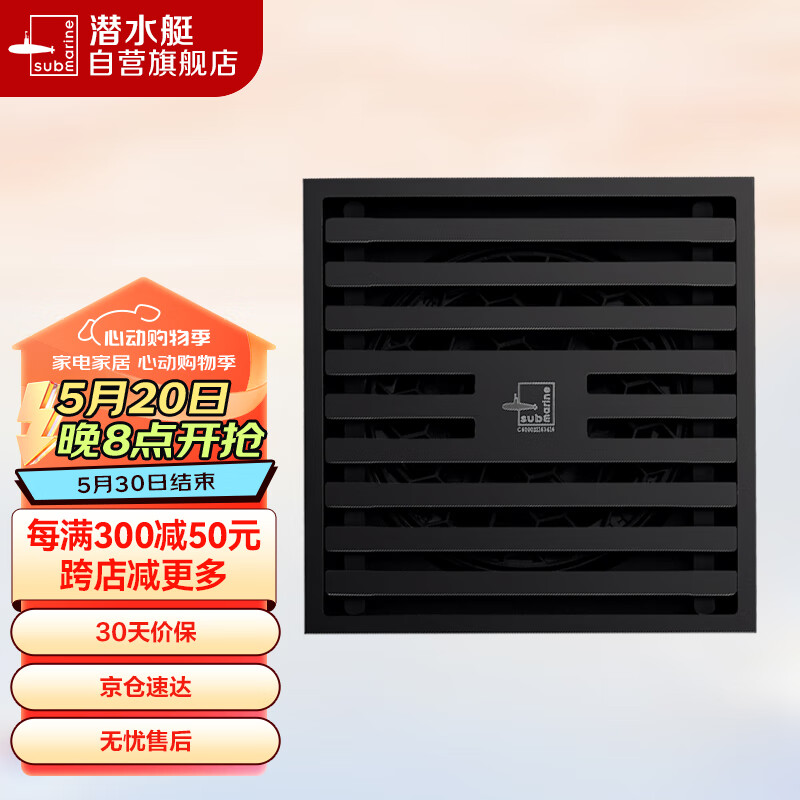 潜水艇(Submarine)BTK50-10黄铜烤漆黑色地漏卫生间淋浴防臭地漏 大排量地漏50管径价格:128.00元!