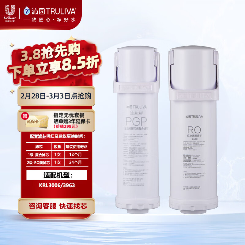 沁园(TRULIVA)小净灵小新KRL3006/3936全套2支滤芯套装【RO膜*1+附件1支(复合滤芯*1)】价格:1200.00元!