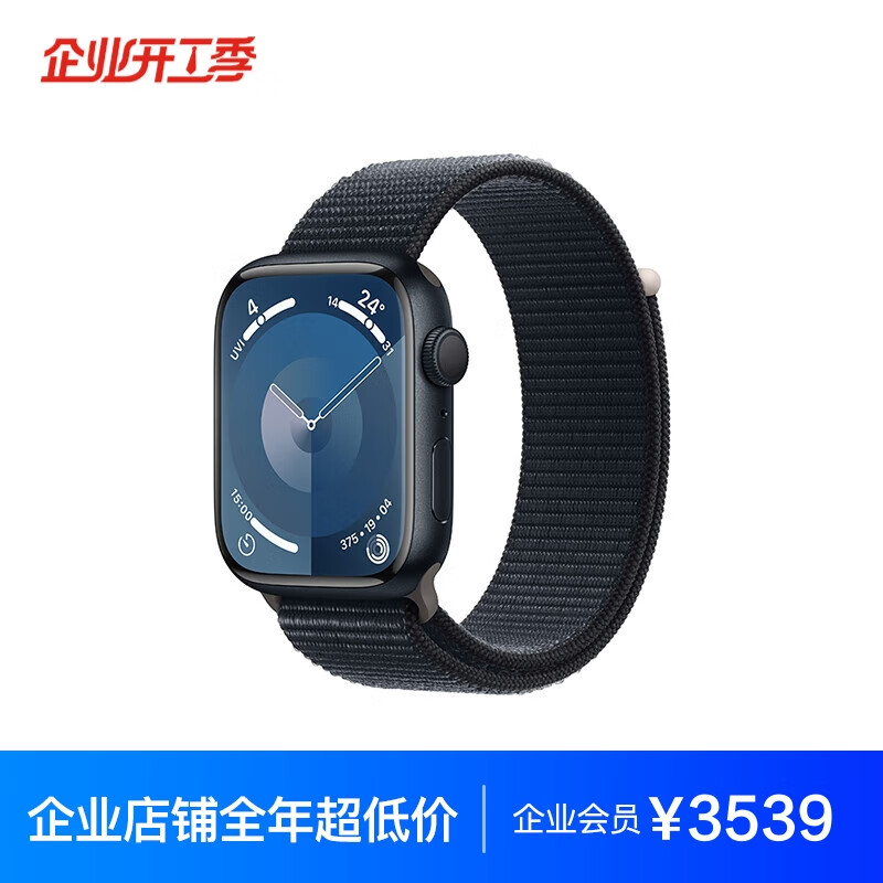 Apple Watch Series?9(GPS+蜂窝网络);45?毫米午夜色铝金属表壳;午夜色回环式运动表带 MRP73CH/A*企业专享价格:3999.00元!