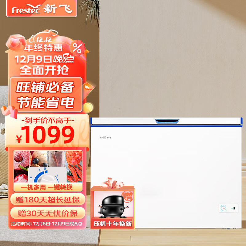 新飞(Frestec) 300升 商用单温冰柜 顶开门 单箱变温冰箱 冷藏冷冻冷柜 BC/BD-300KHAT价格:1099.00元!