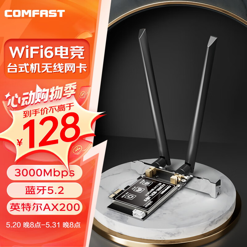 COMFAST AX200 Intel电竞游戏3000M双频5G台式机内置PCI-E无线网卡wifi6代+蓝牙5.2电脑wifi接收器价格:138.00元!