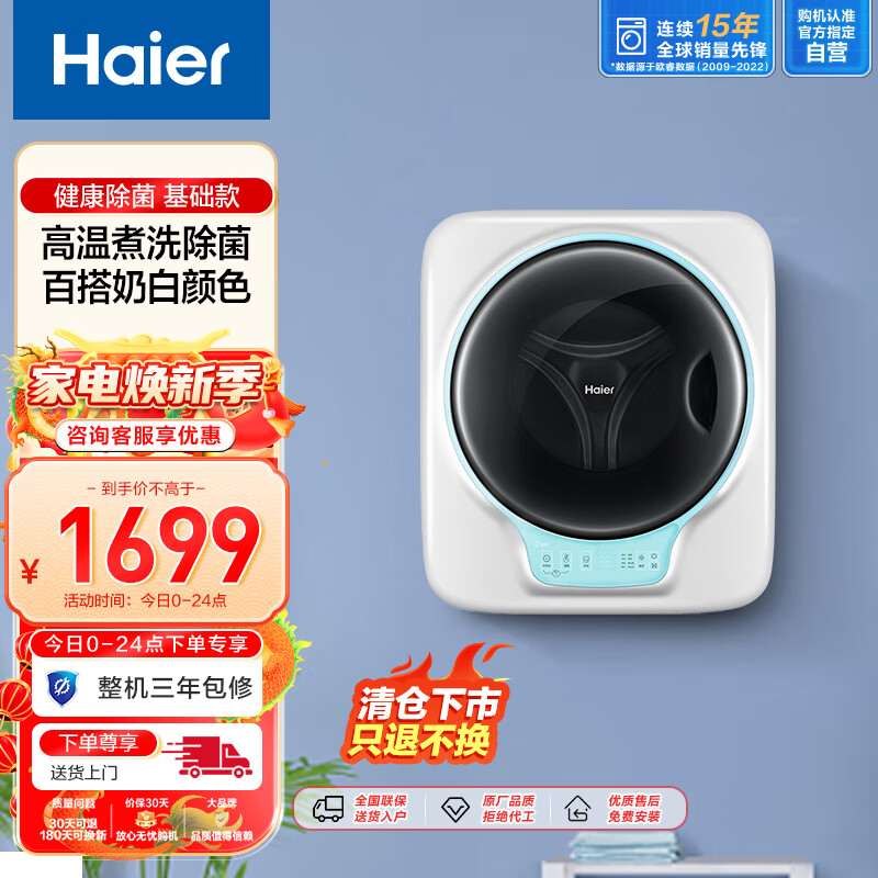 海尔(Haier)3公斤壁挂滚筒全自动 迷你洗衣机小型 婴儿儿童洗衣机 内衣专洗 壁挂GM3070CMYU1宝宝专属价格:1600.50元!