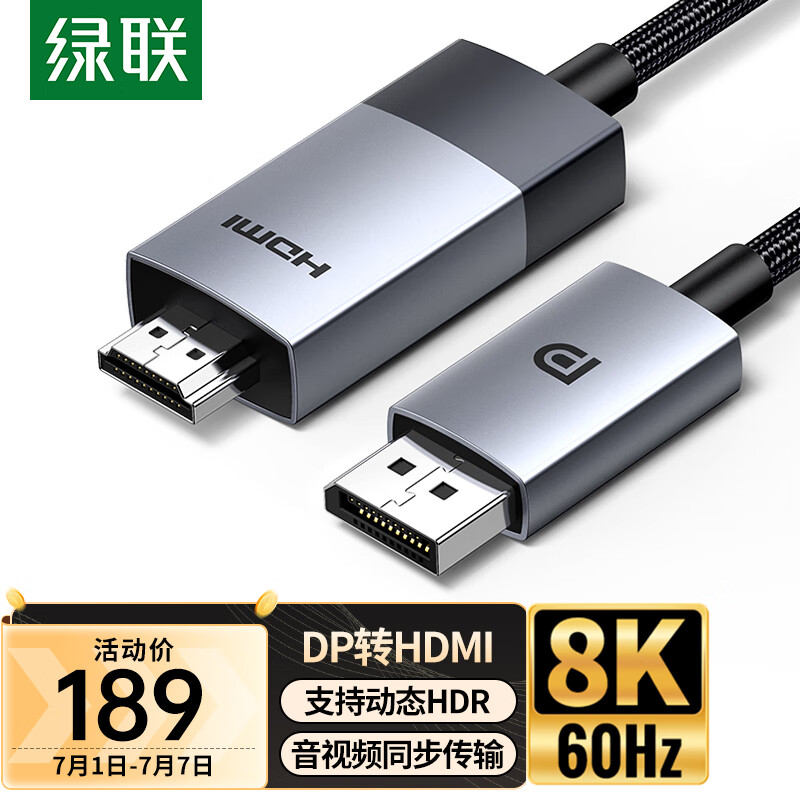 绿联(UGREEN) DP1.4转HDMI2.1转接线 8K高清DisplayPort转HDMI连接线 适用显卡电脑接电视显示器视频线1.5米价格:219.00元!