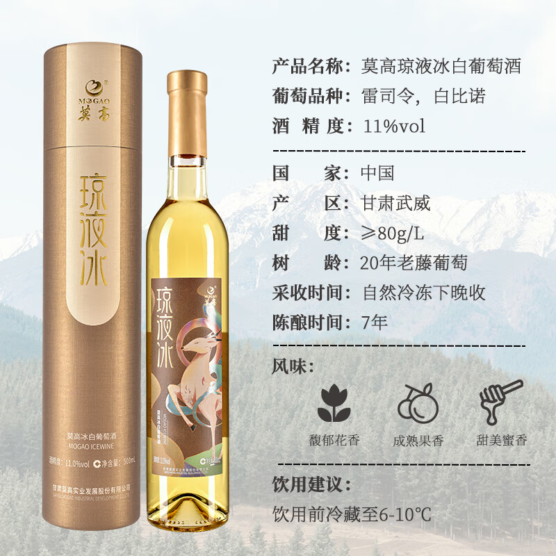 莫高(MOGAO)冰白葡萄酒红酒 雷司令混酿甜果酒冰酒 琼液500ml单支礼盒送礼价格:179.00元!