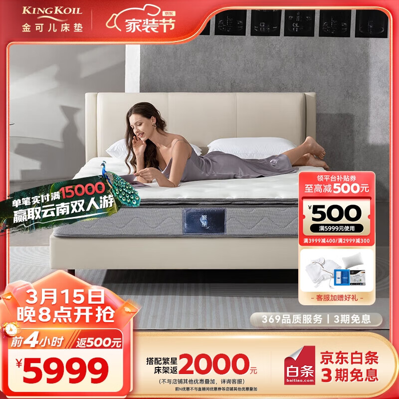 金可儿(Kingkoil)乳胶床垫双面可睡三分区独袋弹簧席梦思床垫繁星A Double 1.8x2米价格:6499.00元!