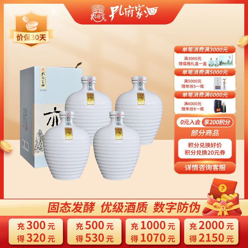 孔府家 亦陶9 浓香型白酒 52度 500ml*4瓶 整箱装 送礼宴饮 纯粮食酒价格:580.00元!