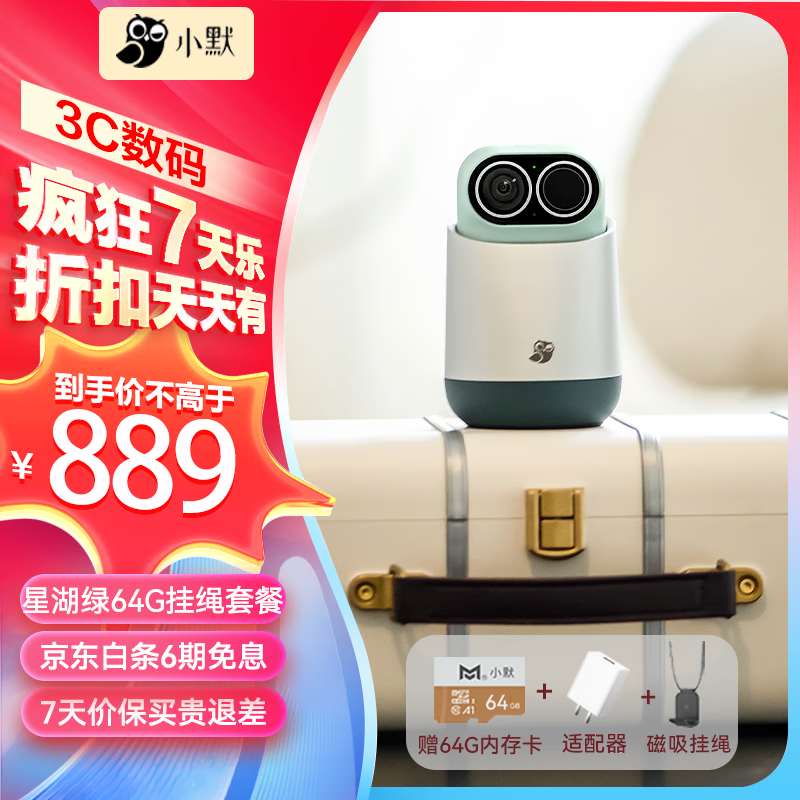 小默魔法相机vlog摄像机强力磁吸监控家用礼盒套装 骑行便携式运动相机 星湖绿 64G内存卡+磁吸挂绳 价格:889.00元!