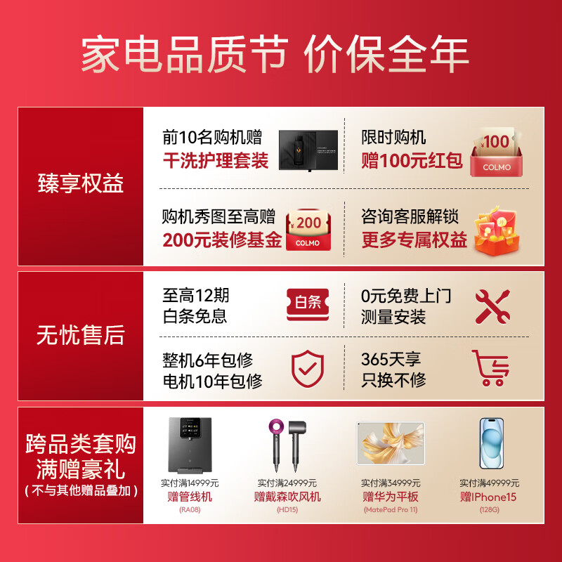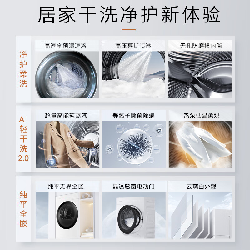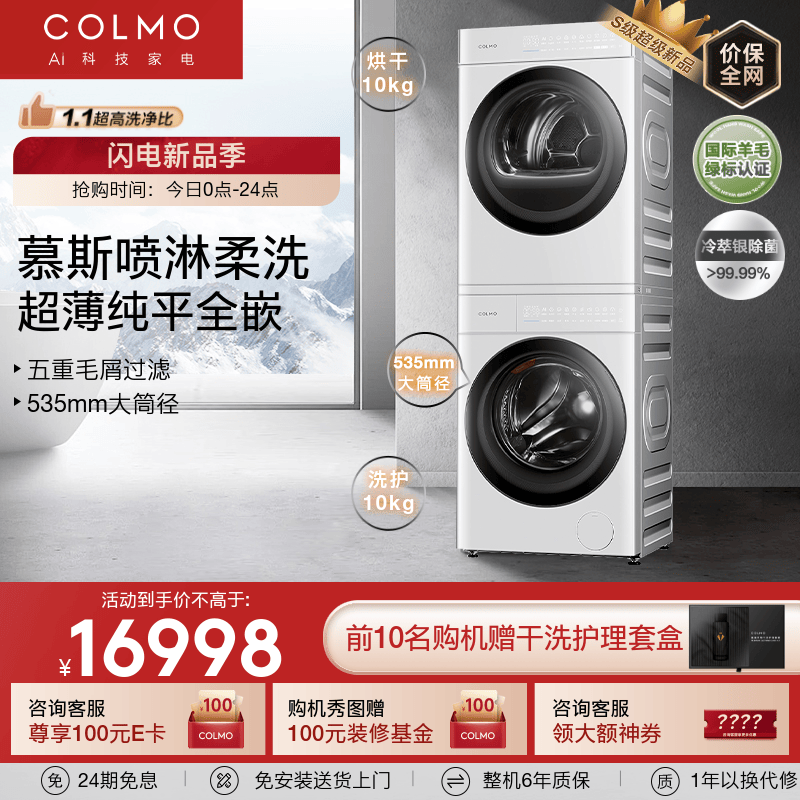 COLMO新象云璃白 10KG滚筒全自动+10KG热泵烘干机 AI轻干洗2.0 纯平全嵌 CLGUT10WEL+CLHPB10WEL价格:16998.00元!